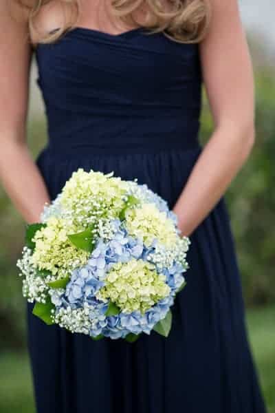 Blue and yellow bouquetThe simple green and blue bouquet were captured by Robert & Kathleen Photographers on Style me Pretty. This is the perfect example of simple and beautiful. The mini green hydrangeas are mixed with blue hydrangeas and babies breath to create an elegant, cleaned lined, bridesmaids bouquet.