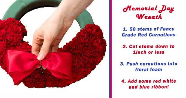 This photo from Better Homes and Gardens is the perfect display of creativity using fresh wholesale flowers! The red centerpiece can be replicated using red carnations. All you need are two foam shaped wreaths and a flat round piece of foam, 30 red carnations, and floral scissors! You can use foam and spray painted foam to create the cake-like shape. Push the carnations into the floral foam after you have soaked it in water. Cover all the foam with carnations until desired coverage is achieved. Use your fingers to open the carnations to their fullest, this technique will keep you from using more carnations than you need to.