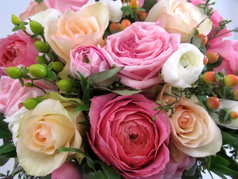 2. Wholesale Flowers: Order flowers online from www.BloomsByTheBox.com. Get garden roses, pink and white ranunculus, peach Versilia roses, peach and green hypericum, seeded eucalyptus, and Italian Ruscus.