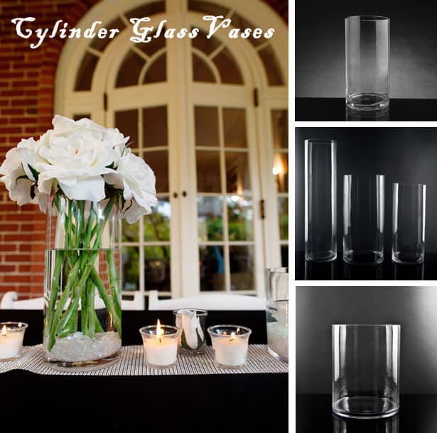 Cylinder Vase Options Cylinder glass vases are the perfect choice for the DIY bride. There is a whole lot you can do with them, yet they are simple enough for the beginner arranger. They also come in all sizes. For taller vases, use flowers with longer stems such as roses and peonies.  For a flower like a ranunculus that has hollow stems use a thinner cylinder and a medium height, this way all the flowers will be more tightly packed together providing stability for the naturally curly stems of the ranunculus. It is also very popular to mix and match vase sizes to create a bundle of arrangements with different heights as one centerpiece. This very popular style table centerpiece is extremely easy to DIY. Choose three types of focal flowers and place one type of flower in each vase. Put the different height vases in a triad to create a large easy centerpiece.