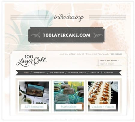 Apparently, this blog proved to be a phenomenon, so just recently 100 layer cake decided to create a comprehensive wedding website (100layercake.com), or as I like to call it, “Bridal Mecca.” At 100layercake.com, brides can buy and sell items for their wedding at the Marketplace, find the most fabulous vendors in the Vendors + Venues section, and lastly, get ideas from an archive of DIY projects from their blog and other resources in DIY Resources.