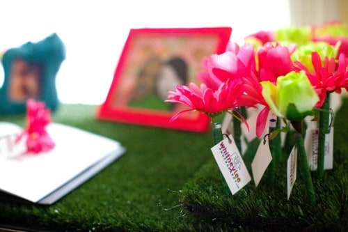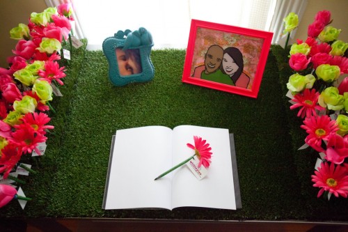 This post is for all of the spring brides out there! Today, I was on Twitter and saw this amazing idea from Offbeat Bride. It’s a guestbook table with, get this… DIY flower pens! You can find the flower pen step-by-step instructions here. The flower pens would make great favors or even escort cards.