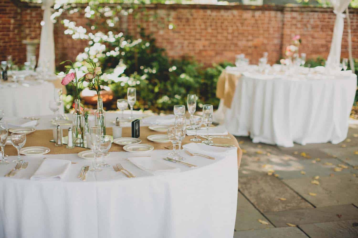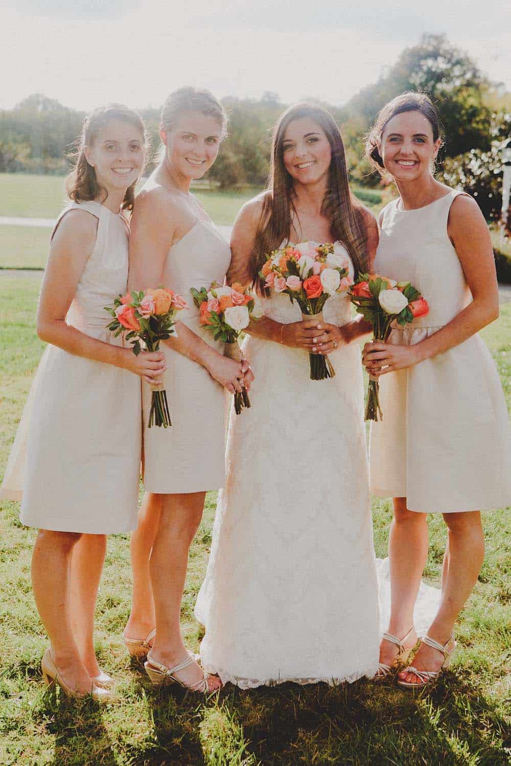 This romantic Virginia wedding is a cross between traditional and vintage perfection! Kim Newton Weddings created the most beautiful atmosphere using decor, burlap, bud vases, and wholesale flowers from BloomsBytheBox.com! She said, “The venue and day were so amazing, we felt like we were in Italy, most definitely not Virginia!” The venue, River Farm, is located in Alexandria Virginia and sports a perfect mix of indoor and outdoor loveliness. The photographer, Kristen Leigh, captured the coral, pinks, creams, and peaches in a whimsical light that gives an Italian feel. Kristen Leigh Photography did such an incredible job, check out her awesome and edgy website!