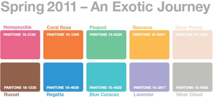 In the Spring 2011 report Leatrice Eiseman, executive director of the Pantone Color Institute states, “The colors designers have chosen for the spring season present an interesting marriage of unexpected warm and cool tones. By cleverly combining complementary colors, those that are opposites on the color wheel, they have created a striking intensity to the palette.”